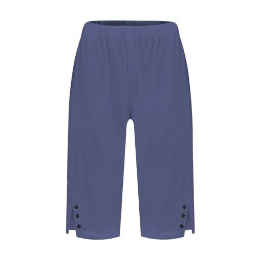 popular ! Pedal Pushers for Women Cropped Straight Leg Linen Capri Pants Casual Summer Side Split Bermuda Shorts with Pockets