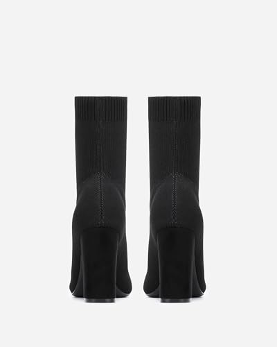 Women's Pointed Toe Ankle Boots - Minimalist Chunky Heel Sock Booties, Stretch Knit Slim Fit Casual Boots for Fall & Winter