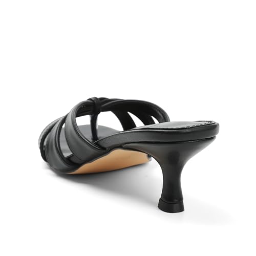 femflame Black Kitten Heels for Women Flip Flops Strappy Heels Summer Square Open Toe Slides Mules Low Heels Women's Heeled dressy Sandals 5