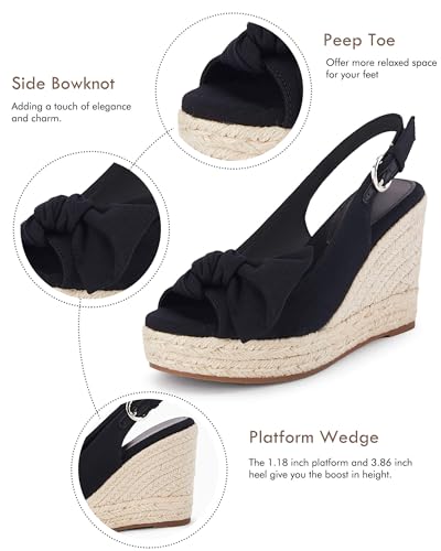 Coutgo Women's Peep Toe Wedges Heels Slingback Espadrille Platform Sandals Side Bowknot Casual Shoes