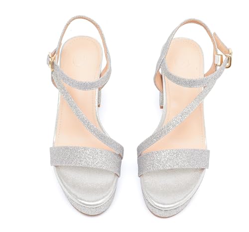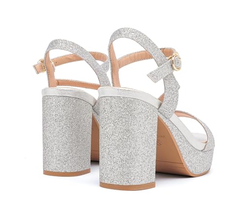 • 【Accentuate your legs】Ultra-chic style women block chunky platform high heels,with glitter black, glitter gold, glitter silver color,these new-age heels heel sandals create the illusion of longer legs and can extend your figure,make you always stand out from the crowd.