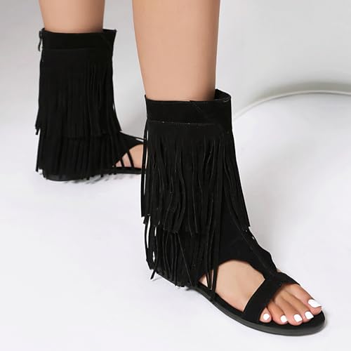 Why Choose Womens Summer Tassel Mid Calf Boots Flat Roman Gladiator Sandals US3-US13.5?