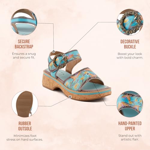 Spring Step L'Artiste Women's KENNA Hand-Painted Leather Sandals with Crystal Buckle 5