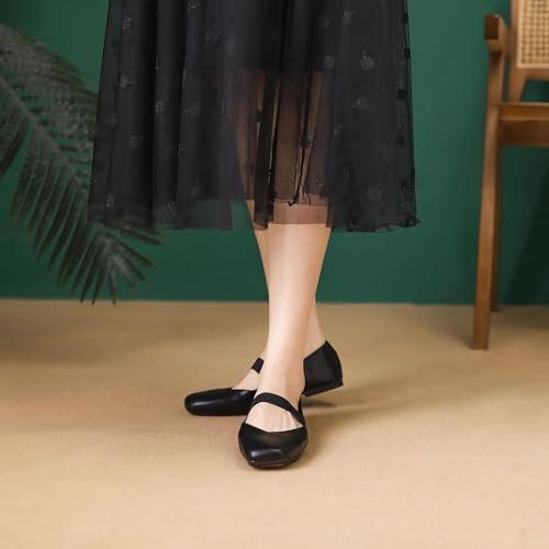 Hee grand Leather Flats for Women Comfortable Square Toe Mary Jane Shoes Elastic Strap Flats Lightweight Walking Shoes 6