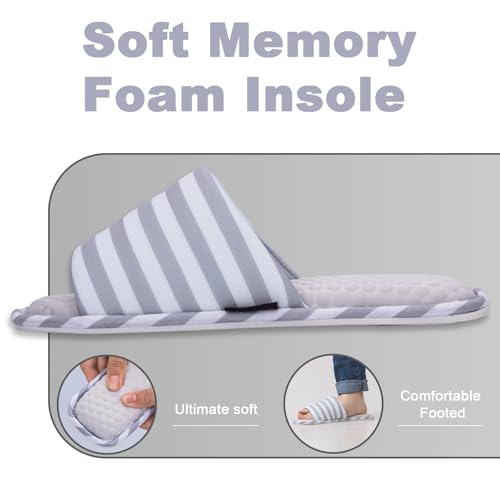 Sole material: Thermoplastic RubbersOuter material: Knit FabricClosure type: Pull-OnUpgraded Lightweight Wide Fit Open-Toe Slippers:Designed with a square-toe and square-heel shape, these ultra-lightweight indoor slippers for women provide a roomier fit than traditional styles, making them the perfect house slippers for women indoor and summer slippers for those with wider feet.Breathable Knitted Fabric & Massage Beads for Extra Comfort:The striped knitted fabric wicks away moisture, keeping feet cool and dry. A high-density memory foam insole molds to your foot for cloud-like cushioning. Built-in massage beads gently stimulate pressure points, reducing fatigue and enhancing comfort for all-day wear.Upgraded Non-Slip & Noise-Reducing TPR Sole:The non-slip TPR sole provides secure traction on indoor surfaces, ensuring stability and making these house slippers safe to wear around the home. The silent outsole design minimizes noise while also protecting all types of flooring, including wood, tile, and vinyl.Designed for Indoor Comfort:These women’s slippers are specifically made for indoor wear, offering breathable comfort for home, bedroom, and kitchen use. Their open-toe design and velvety memory foam support make them the perfect summer house slippers for women. Whether you're looking for slippers for summer, big toe slippers, or slides for women, these cozy shoes are the ideal choice.Easy to Clean & Long-Lasting Freshness:These open toe slippers for women are machine-washable in cold water, ensuring they remain soft, fresh, and odor-free for prolonged use, so your feet can enjoy lasting comfort every day. Perfect for everyday use. supreme materials and excellent craftsmanship ensure long-lasting durability.