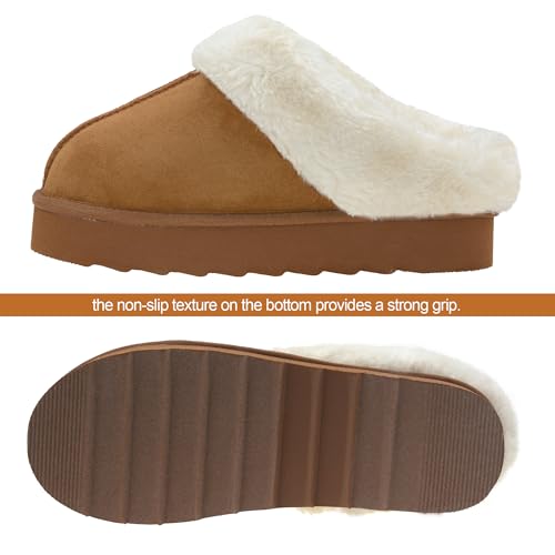 Fur description: Faux FurSole material: RubberOuter material: Faux SuedeClosure type: Pull-On【contemporary Design】The women's winter slippers crafted from breathable faux suede with a 1.6 thick sole, which elongates your legs and perfect for everyday casual outfits.【Premium Comfort & Warmth】: Crafted with fuzzy fluffy faux fur lining,these indoor outdoor slippers for women provide softness, breathability,and all-day warmth—perfect for both winter coziness and summer comfort.【Supportive Memory Foam Footbed】:Featuring high-density memory foam cushioning, these womens memory foam slippers mold to your feet for cloud-like support, reducing fatigue and keeping every step cushioned and comfortable.【Versatile Indoor/Outdoor Wear】:These women's platform slippers designed with a lightweight yet sturdy rubber sole, they offer excellent grip for safe wear at home,They are suitablewalking dogs, shops, mailboxes, etc.【Easy-Care & Long-Lasting】:Machine washable (cold water) and air-dry friendly, these womens house slippers have sturdy side-stitched construction, will maintain their plush texture and shape wash after wash, ensuring lasting softness. Perfect for everyday use. supreme materials and excellent craftsmanship ensure long-lasting durability.