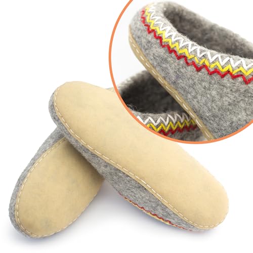 Sole material: RubberHANDMADE FOR PERFECT FIT AND COMFORT: Each pair is hand-felted on a mold for a consistent fit. These women's wool slippers gently hug your feet with sock-like softness and provide natural temperature regulation thanks to 100% New Zealand wool.PREMIUM WOOL FELT THAT BREATHES NATURALLY: These felted wool slippers help regulate body temperature year-roundβcool in summer, warm in winter. The breathable, moisture-balancing design ensures lasting comfort, even when worn barefoot all day.SAFE FOR SKIN, PETS, AND THE PLANET: Our 100% wool slippers use skin-friendly, chemical-free dyes and biodegradable materials. Gentle on sensitive skin and safe around pets, they offer eco-conscious comfort without sacrificing softness or quality.DURABLE SLIP-RESISTANT SOLE FOR INDOOR & OUTDOOR USE: The sturdy anti-slip rubber sole is securely sewn for long-lasting wear. These wool slippers for women transition effortlessly from cozy indoor lounging to quick outdoor errands like stepping out to the garden or mailbox.MEANINGFUL GIFT FOR WOMEN WHO LOVE COMFORT: Surprise her with these wool house slippers that feel like a hug for her feet. Thoughtfully handmade and beautifully practical, they make a cozy, feel-good gift for birthdays, holidays, or self-care moments she'll cherish. Perfect for everyday use. first-class materials and excellent craftsmanship ensure long-lasting durability.