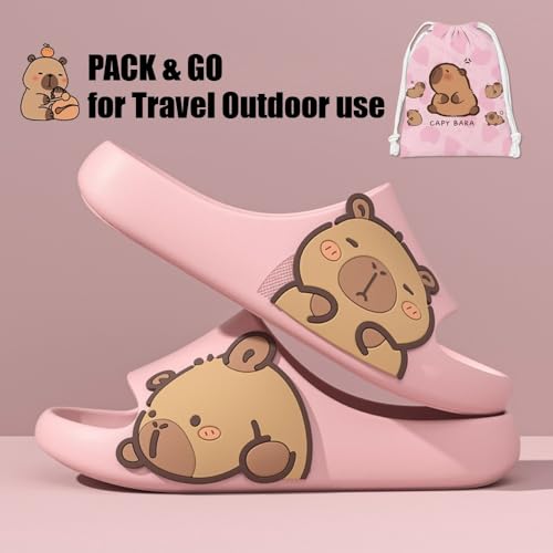 Cute Capybara Sandals Slip On House Slippers for Women - Portable Drawstring Shoe Pack & Comfort Wear Cloud Slides Travel Set Breathable Lightweight Non Slip Chunky Sole Kawaii Animals Christmas Gifts 6