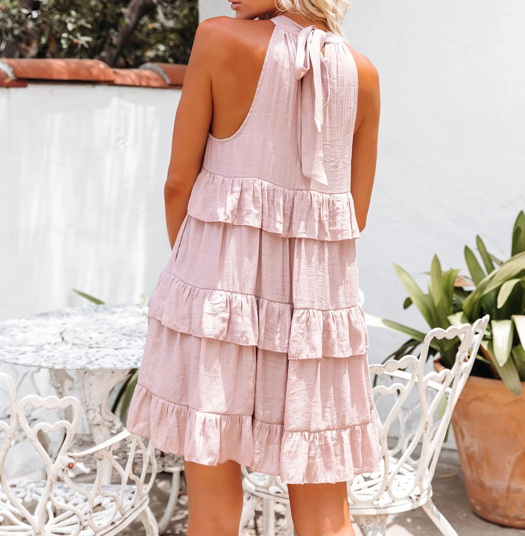 R.Vivimos Summer Dresses for Women Halter Casual Loose Swing Mini DressThe Material Is Lightweight And Breathes Well, Making The Dress Ideal For Hot Summer Days;The Dress Has Sweet Girly Feel While Loose Fit Adds Just The Right Amount Of Relaxed And Movement;The Above Features Make This Cute Dress Easy To Become A Regular Piece In Your Summer Closet;This Summer Sleeveless Dress Is Flowy Yet Structured, Hugging Your Body Curves Just Right And Making You Feel Feminine;The Hem Has Three Row Of Darling Ruffles, Adding A Chic And Playfulness vibes;In Addition, There Are Two Side Pockets For Added Convenience Without Compromising Overall Style;The Casual Outfit Is Perfect for Summer Laid-back vibe. It Strikes That Balance Between contemporary and Comfort. Can Be Worn Alone Or As A Beach Cover Up;Occasions:Β Suitable for Casual, Beach Getaway, Cruise, Photo Shoot, Vacation, Dating, Honeymoon, Holiday, Festivals, Daily Wear, Etc. Perfect for everyday use. supreme materials and excellent craftsmanship ensure long-lasting durability.