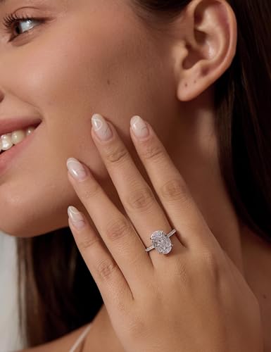 Michooyel Oval Cut 4ct Engagement Ring Sterling Silver Cubic Zirconia Rhodium Plated Solitaire Women‘s Ring Wedding Ring Promise Ring Wedding Band