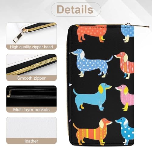 Travel Purse Fashion Design, Huge Storage Capacity Wallet, Cute Decor Wallet, Long PU Zipper Purse Black Dachshund Puppy Animal Dog 6