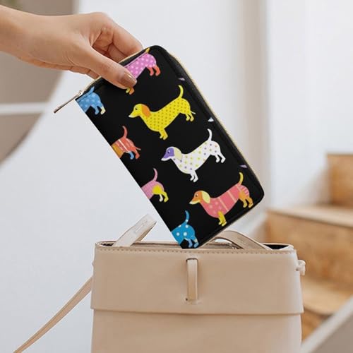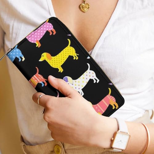 Travel Purse Fashion Design, Huge Storage Capacity Wallet, Cute Decor Wallet, Long PU Zipper Purse Black Dachshund Puppy Animal Dog 1