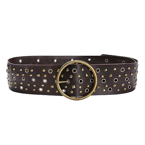 Alyweatry Women Boho Wide Disc Concho Leather Belt Aesthetic Grunge Western Waist Belt Y2k Vintage Accessories