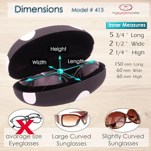 • PREMIUM PROTECTION: My Eyeglass Case offers a hard shell sunglasses case constructed from resilient elegant polka dot design in black and white fabric. Designed especially for your large to extra large frames, this case ensures your aviator and iconic eyeglasses remain scratch-free. The internal flock lining provides an extra layer of safety, preventing any damage to your precious frames.