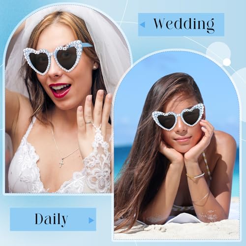 Flutesan Bride Sunglasses Blue Bachelorette Party Heart Sunglasses Bride To Be Gifts Pearl Heart Glasses for Bachelorette Party Accessories Favors 6