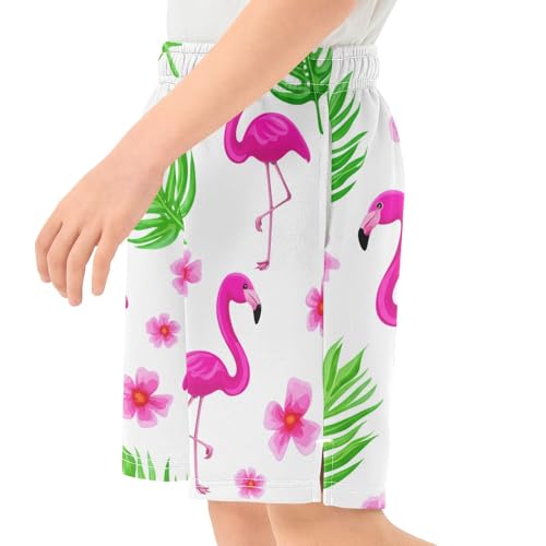 J JOYSAY Flamingo Flower Palm Boys Athletic Shorts Kids Youth Casual Shotrs with Pockets Elastic Waistband