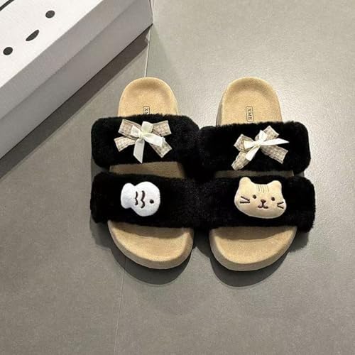 ZQW Women's 3D Cat & Fish Plush Fuzzy Slippers Y2K Kawaii Non-Slip Platform House Shoes Casual Cute Animal Slides Outdoor 6