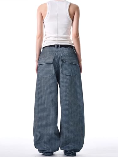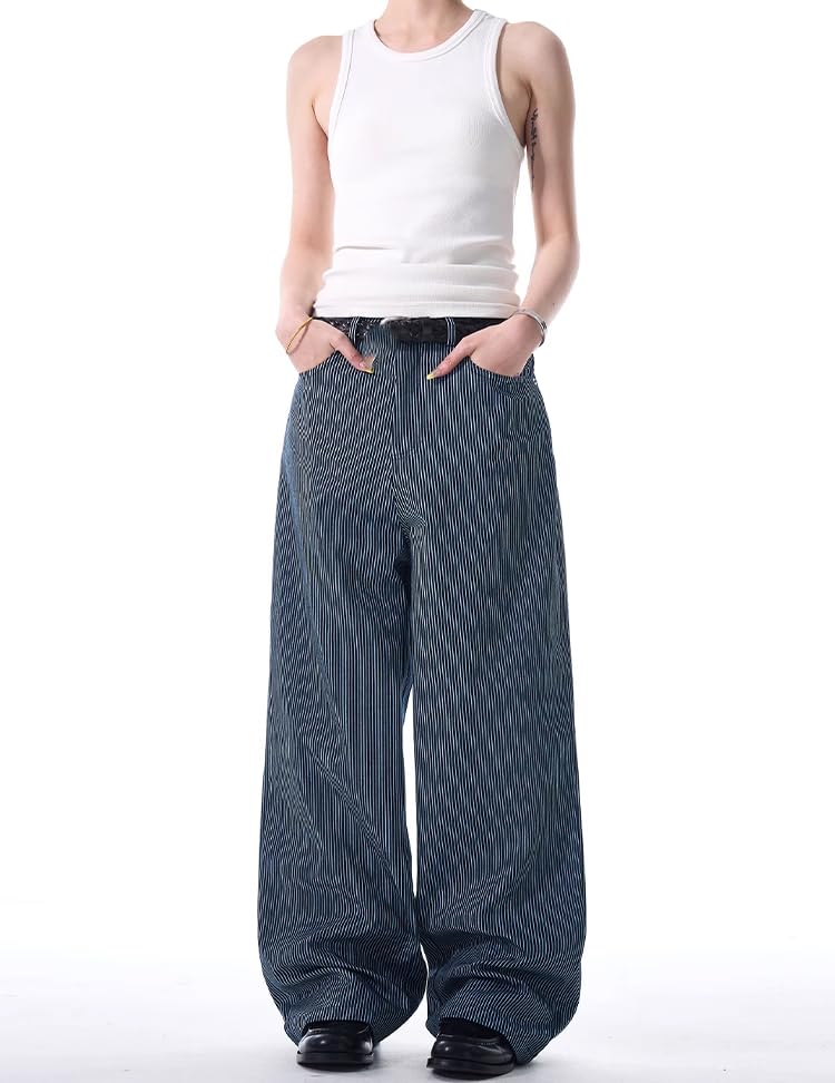 GUOYUXIAO Men's Jeans Retro Minimalist Stripe Casual Denim Pants Wide-Leg Straight-Leg Trouser for Men