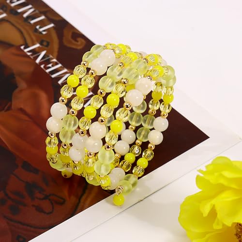 Coiris Multi Layers Statement Yellow Beaded Bracelet Adjustable Strand Bangle Bracelet for Women 6