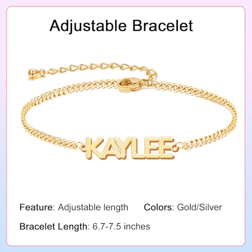 Material: Stainless SteelMetal type: Stainless SteelClasp type: Lobster ClawChain type: Bracelet[Personalized Name Bracelets for Women] This name bracelet can be customized with 1-3 names and is available in a variety of styles. You can customize your children's names, husband's name, friend's name or your own name to make it a meaningful piece of jewelry that represents love, family or friendship. The small-sized designs make the bracelet look more elegant and delicate[Adjustable & Versatile Fit] Our exquisite women's bracelets are 6.7 inches - 7.5 inches in size, with an extension chain. The length can be adjusted to fit your wrist, giving you a snug wearing experience[Premium Quality] Our personalized gold bracelet is made of 18K gold-plated stainless steel, which is rust-proof, hypoallergenic, sturdy and durable. Each letter is carefully polished, and the smooth edge will not scratch your skin. It is a great choice for daily wear or as a gift for family and friends[Suitable for Every Special Woman] A special personalized gift for moms, wives, grandmas, girlfriends, sisters, or friends—great for birthdays, Mother’s Day, Valentine’s Day, Christmas, and anniversaries. Exquisite and personalized, our multiple name bracelets are a versatile choice for every lady in your life[Service] If you have any questions about the custom bracelet, we're here to help Perfect for everyday use. excellent materials and excellent craftsmanship ensure long-lasting durability.