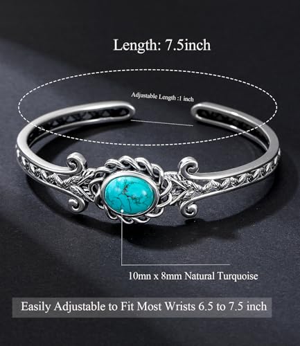 • Material: The whole body of the bracelet is made of solid 925 sterling silver, with an oxidation effect on the outside, and a 12x10 mm genuine turquoise is inlaid in the middle, forming a boho vintage and enduring style