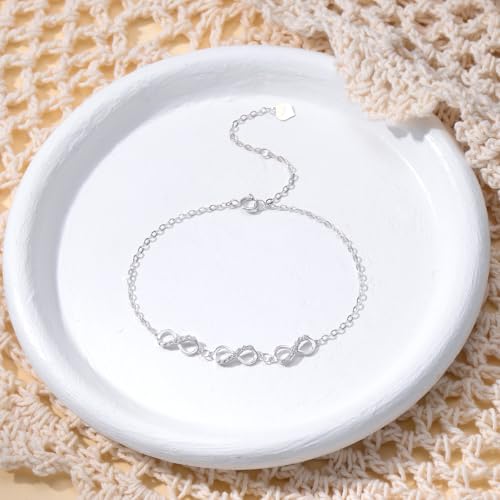 SISGEM 10k White Gold Three Infinity Bracelet for Women, 10 kt Gold Created Moissanite Love Wrist Jewelry Gifts for Wife, Present for Her, 6.2-7.8 Inches 4