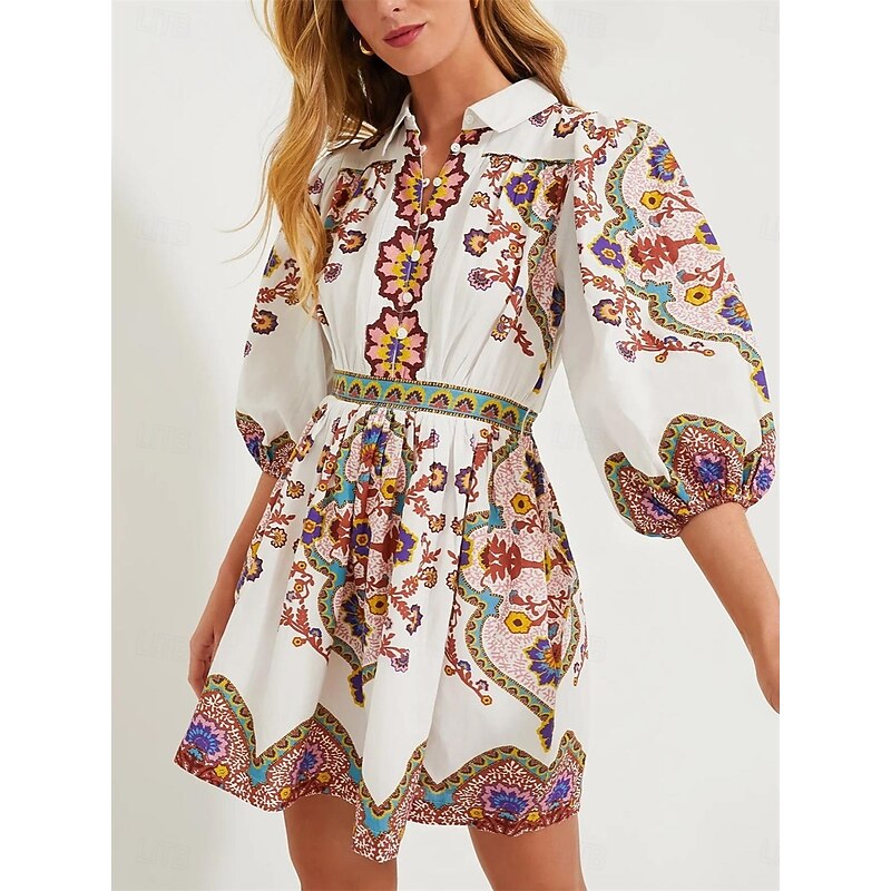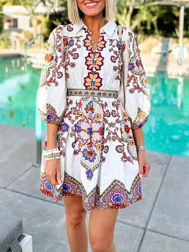 This Women's Mini Dress Petite Dress A Line Dress Boho Dress Elegant Bohemia Cute Lantern Sleeve Vacation Daily Date Loose Fit Graphic Half Sleeve V Neck White Summer Spring Fall combines elegant design with practical functionality. Every detail has been carefully considered to ensure you get the finest possible experience. The first-class construction means this product will serve you well for years to come.