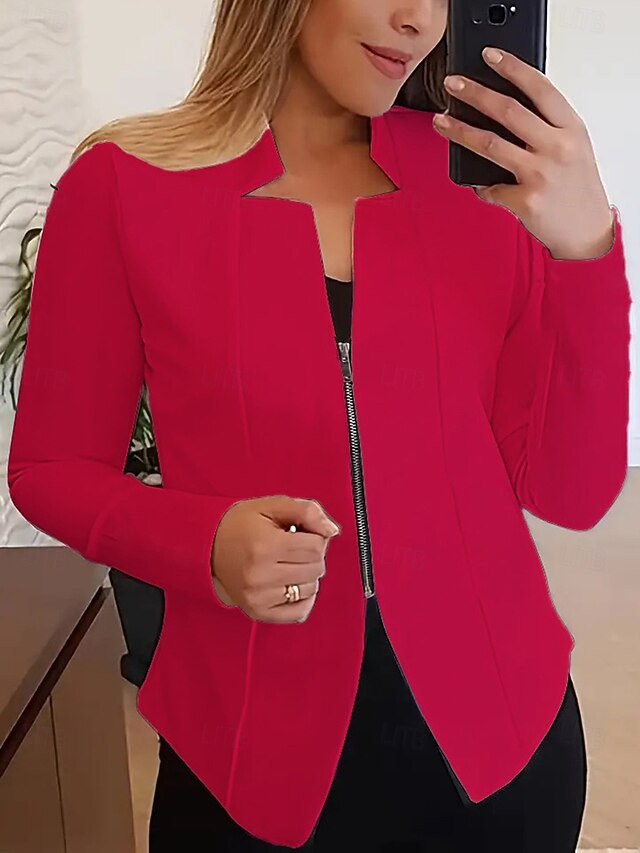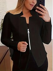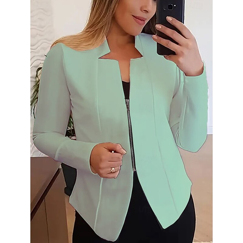 This Women's Blazer Comfortable Breathable Zipper Fashion new-age Plain Work Daily Regular Stand Collar Regular Fit Long Sleeve Outerwear Black White Light Green Spring Fall combines elegant design with practical functionality. Every detail has been carefully considered to ensure you get the best possible experience. The premium construction means this product will serve you well for years to come.