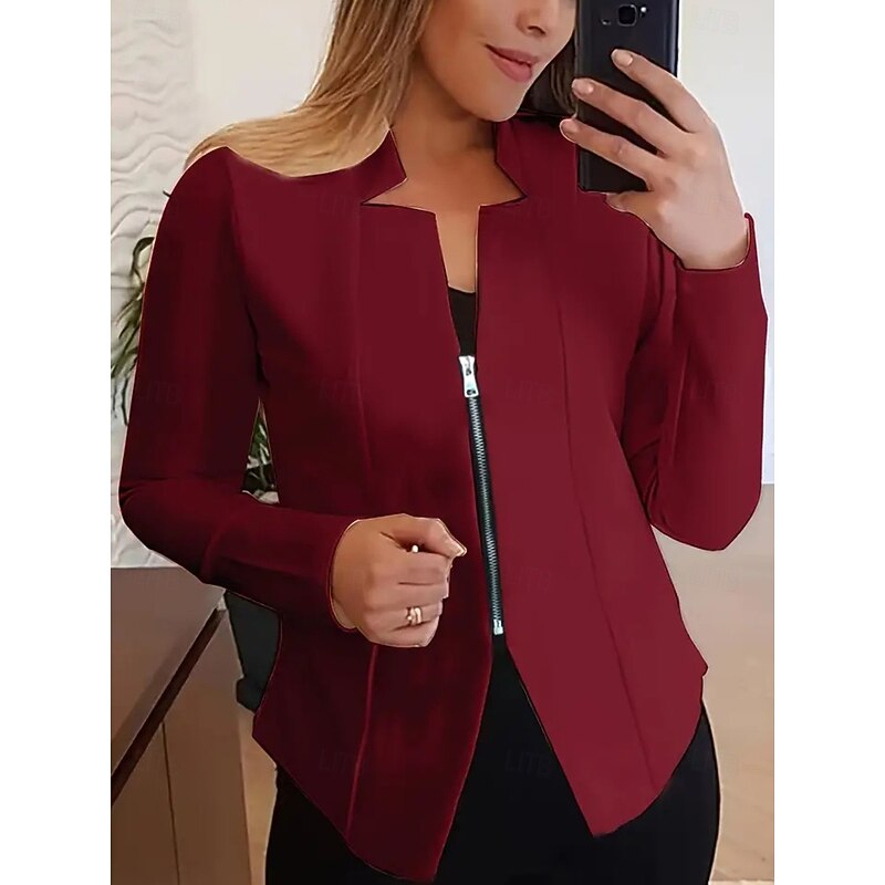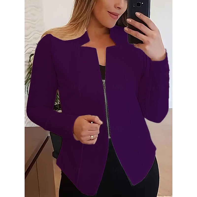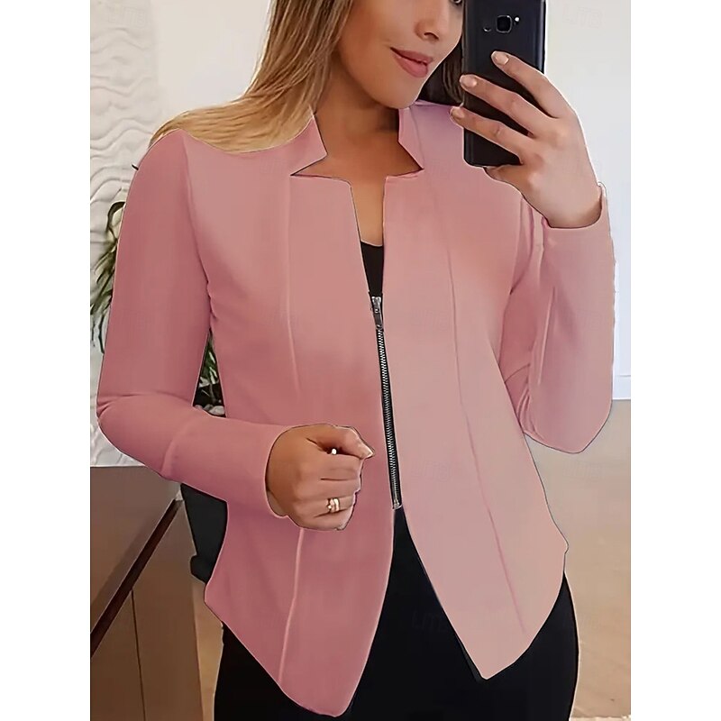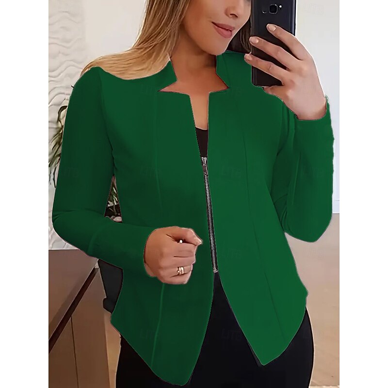 Why Choose Women's Blazer pleasant Breathable Zipper Fashion current Plain Work Daily Regular Stand Collar Regular Fit Long Sleeve Outerwear Black White Light Green Spring Fall?