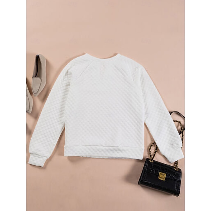 Women's Designer Sweatshirt Fashion Plain Work Round Neck Long Sleeve White Spring Fall