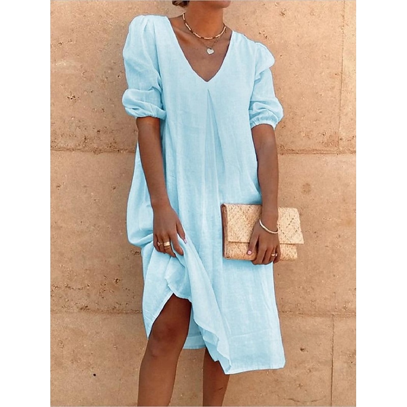 This Women's White Yellow Pink Summer Spring Midi Dress Linen-Inspired Dresses Cotton Linen Dress Smock Dress Solid Basic Lantern Sleeve Vacation Loose Fit V Neck combines elegant design with practical functionality. Every detail has been carefully considered to ensure you get the leading possible experience. The first-class construction means this product will serve you well for years to come.