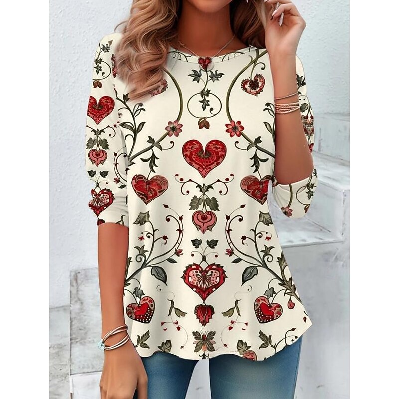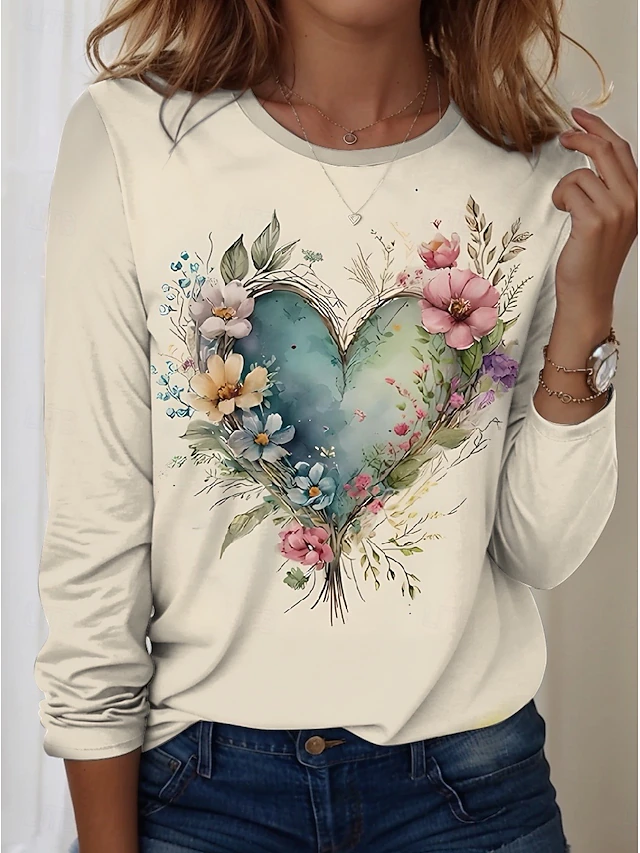 This Valentine's Day Women's T shirt Crew Neck Long Sleeve Tunic Heart Casual Regular Tops Daily Print Black White Green off-white Beige Spring Fall combines elegant design with practical functionality. Every detail has been carefully considered to ensure you get the finest possible experience. The first-class construction means this product will serve you well for years to come.