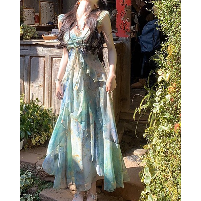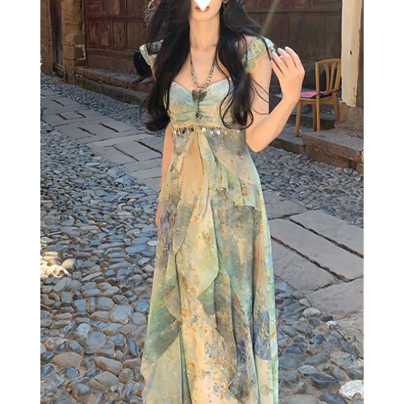 Why Choose Women's Long Dress Maxi Dress Print Dress newly-released-age Vacation Holiday Tea Party Regular Fit Flower Sleeveless V Neck Green Summer?