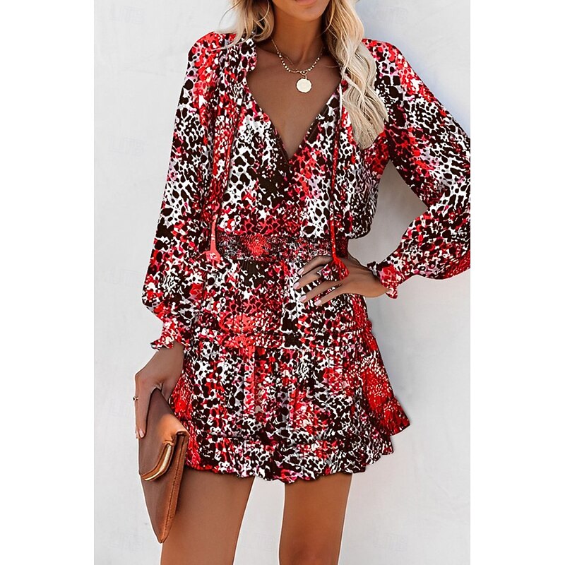 popular ! Women's Mini Dress Petite Dress Print Dress Fashion Daily Holiday Going out Regular Fit Flower Long Sleeve V Neck Black Red Khaki Rose Red Summer