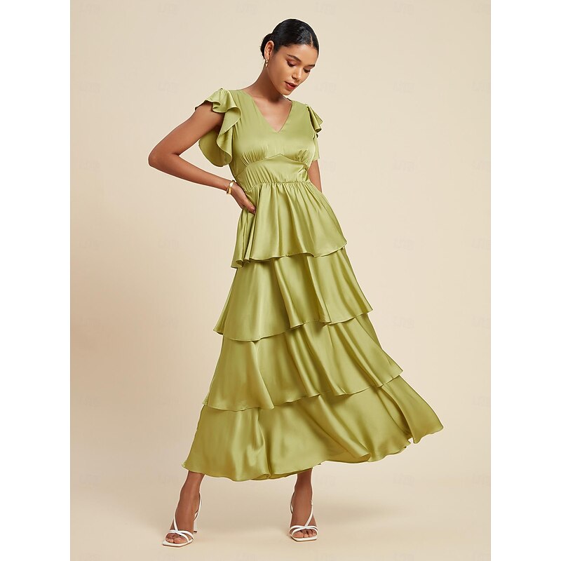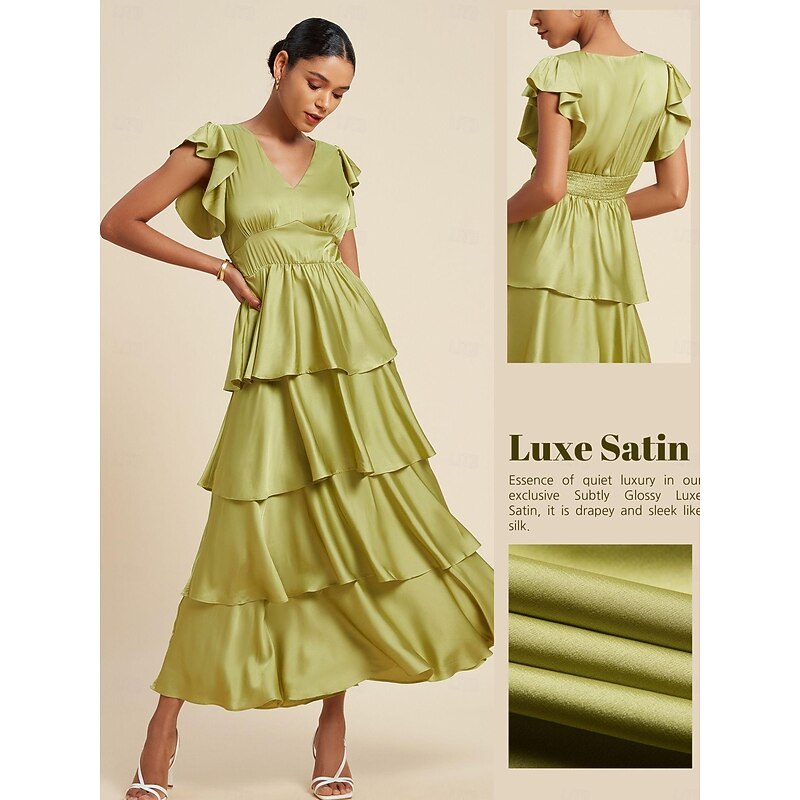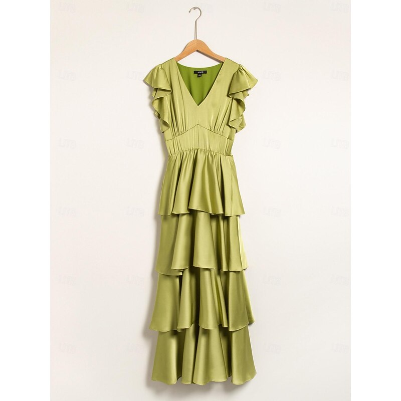 More information about Satin Ruffle V Neck Maxi Dress