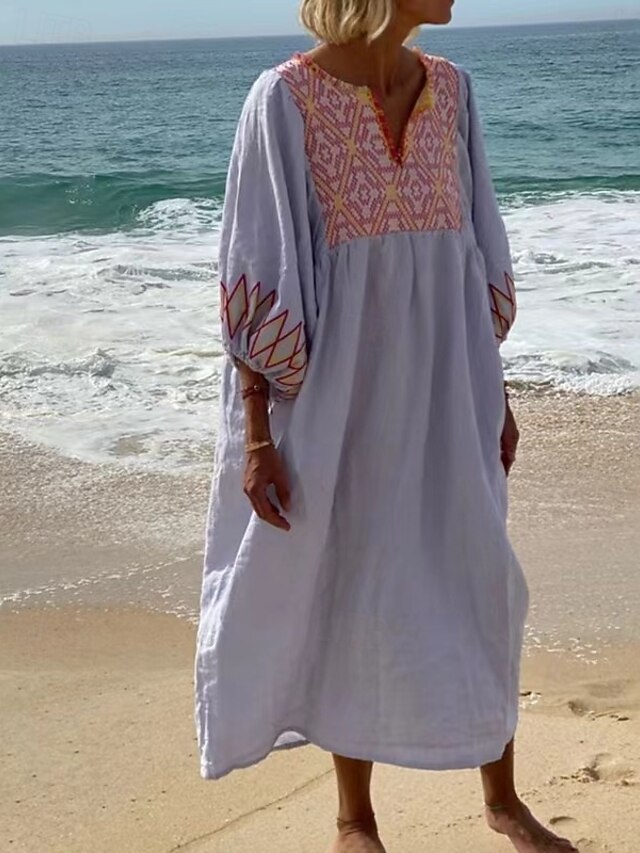More information about Women's Maxi Dress Shift Dress Casual Beach Regular Fit Floral 3/4 Length Sleeve V Neck White Yellow Blue Green Summer