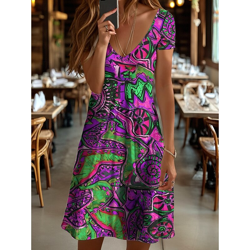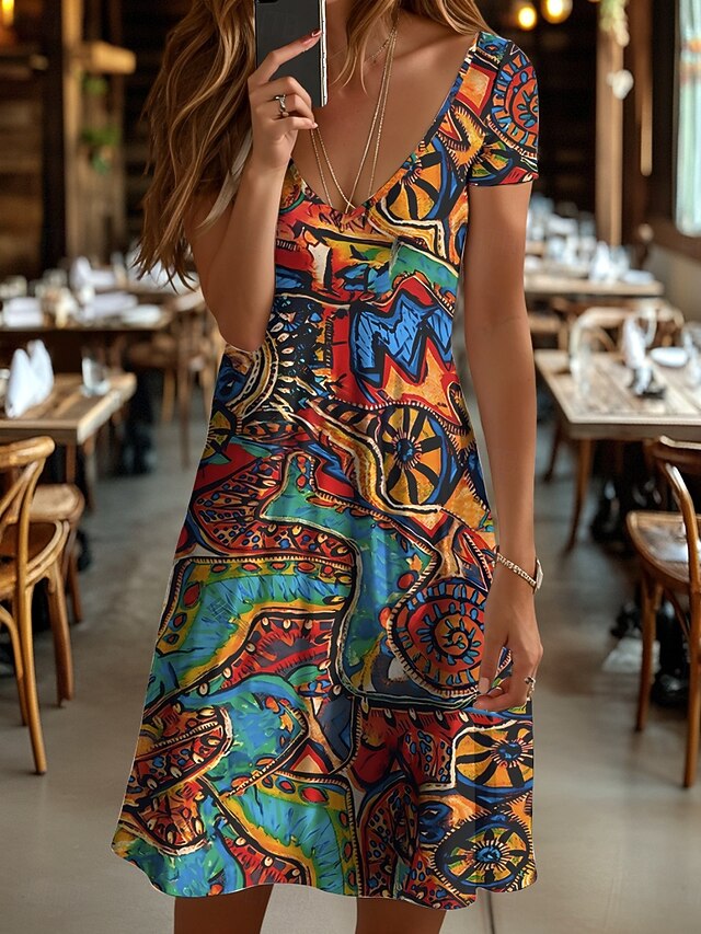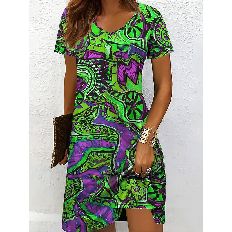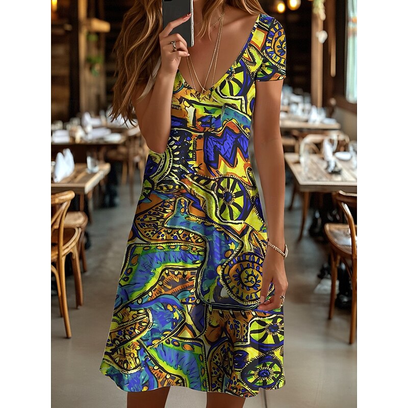 More information about Women's Mini Dress Knit Dress Casual Dress T Shirt Dress Tee Dress Sundress Elegant Vacation Casual Beach Regular Fit Graphic Geometric Abstract Short Sleeve V Neck Yellow Blue Purple Orange Summer