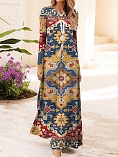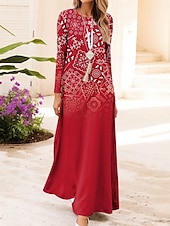 More information about Women's Maxi Dress Vintage Bohemian A Line Dress Crew Neck Long Sleeve Casual Daily Regular Fit Graphic Geometric Dark Red Red Blue Brown Summer Spring Fall Winter