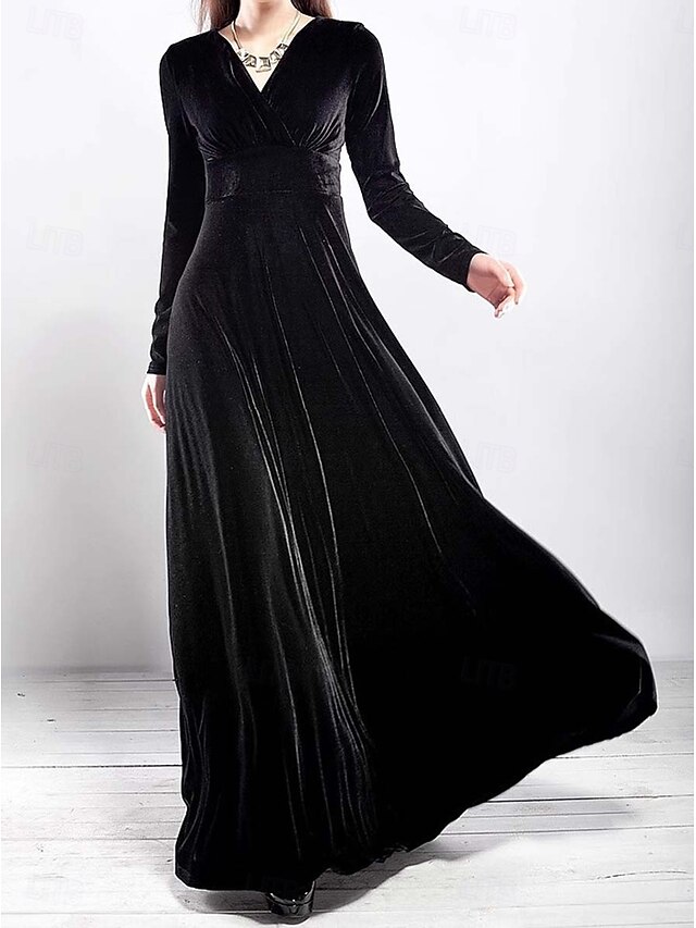 More information about Women's Maxi Dress Sheath Dress A Line Dress Fit And Flare Dress Party Birthday Formal Wedding Party Wedding Guest Regular Fit Plain Long Sleeve V Neck Black Red Purple Spring Fall Winter Autumn