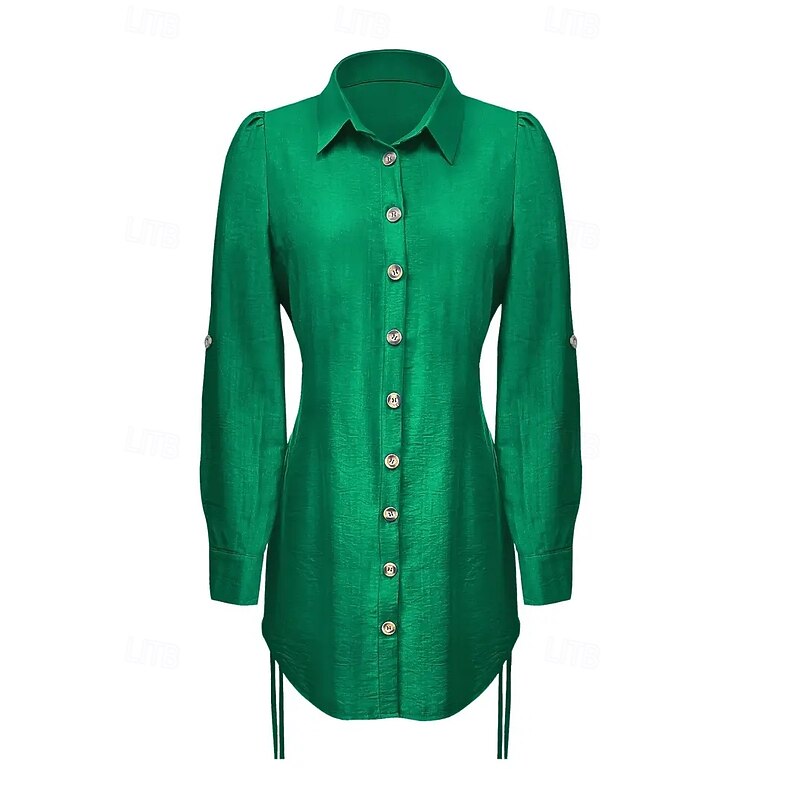 Highlights - Elegant women's fall dress - Made of high-quality polyester fabric - Features long sleeves for a sleek look - V-neckline and solid color design add a touch of sophistication - Button, drawstring, and shirred details for added style - excellent for daily wear or a special occasion - Available in mini dress and petite dress lengths for a flattering fit.