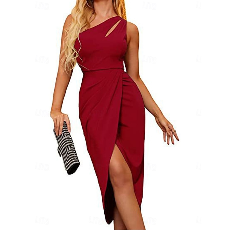 Women's Midi Dress Black Dress Graduation Dress Casual Dress Cocktail Dress Casual Party Street Regular Fit Plain Sleeveless One Shoulder Black Wine Green Summer Fall