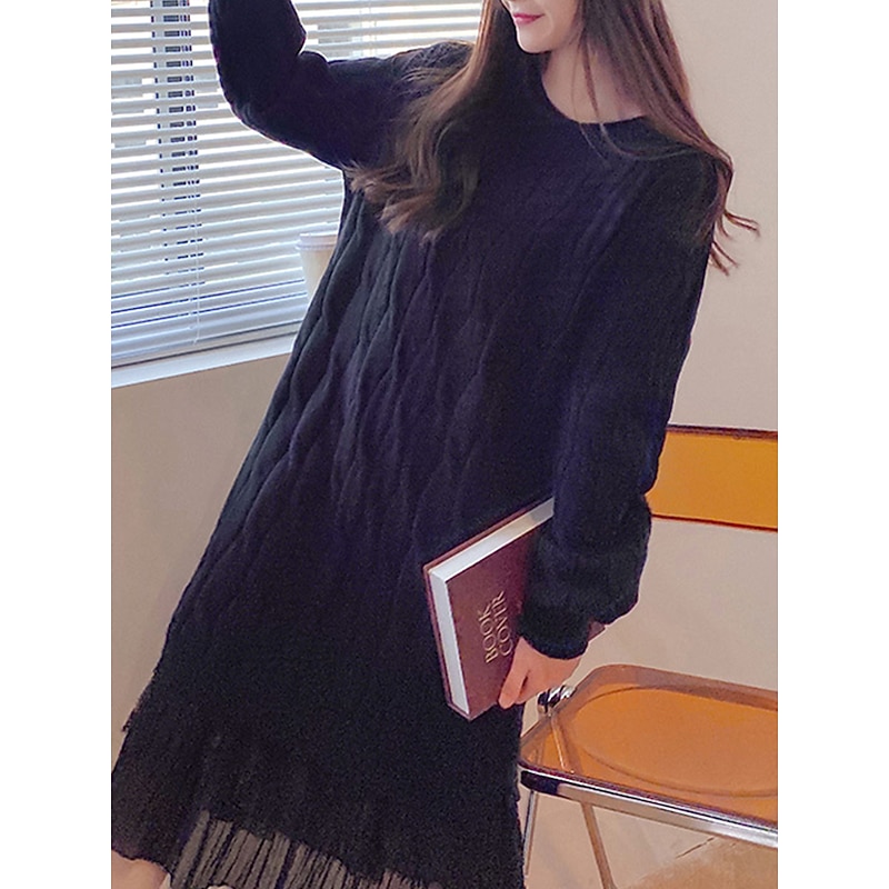 Highlights [Fabric] Crafted from soft and cozy acrylic knit fabric, this sweater dress offers micro-elasticity for added comfort and a laid-back feel. The fabric's high-quality composition ensures warmth and durability, making it perfect for the fall and winter seasons. [Fit] Boasting a loose fit design, the maxi dress provides a relaxed silhouette that flatters a variety of body types. The long sleeves and crew neckline enhance its casual, yet contemporary appeal, making it suitable for daily wear. [Design Highlights] This long sweater dress features intricate ruched detailing and patchwork elements that add depth and visual interest. Its plain pattern allows the subtle design to stand out, while ensuring it remains versatile in styling options. [Occasions] Ideal for vacations, holidays, casual outings, or outdoor events, this dress is designed to offer both comfort and style. Whether you're spending a day out or relaxing during a winter getaway, this dress is a versatile addition to your wardrobe. [Size] Available in a versatile one-size option, the dress accommodates a range of sizes with its loose and comfortable fit, ensuring ease of wear for various body shapes. Perfect for everyday use. supreme materials and excellent craftsmanship ensure long-lasting durability.