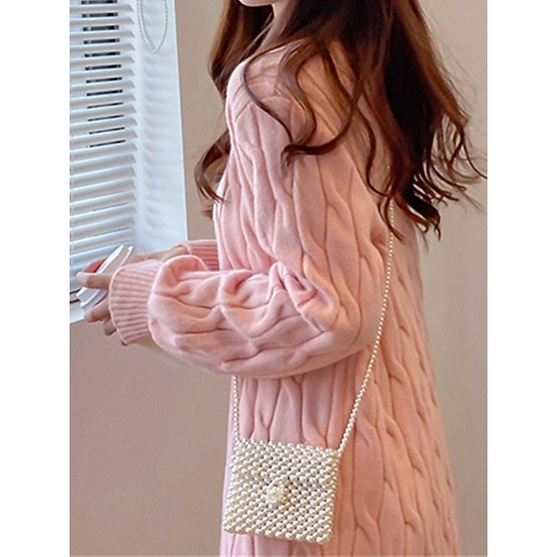 Women's Sweater Dress Knit Dress Jumper Dress Long Dress Maxi Dress Knitwear Fashion Daily Plain Outdoor Casual Holiday Vacation Crew Neck Long Sleeve Ruched Patchwork 2023 Loose Fit Black White Pink