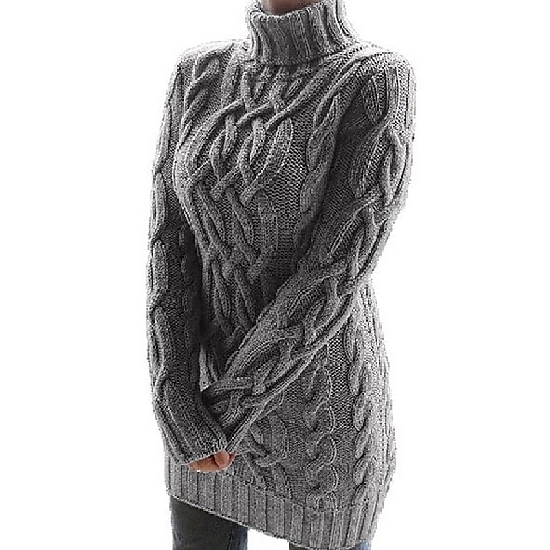 : Crafted from a luxurious blend of polyester and knit, this women's sweater dress promises both comfort and durability. The cable-knit pattern provides warmth and a rich texture, perfectly complemented by a micro-elastic fit. Designed to hug the body's natural curves, it falls to a flattering mid-thigh length with a regular fit, offering a balance between elegance and casual ease.