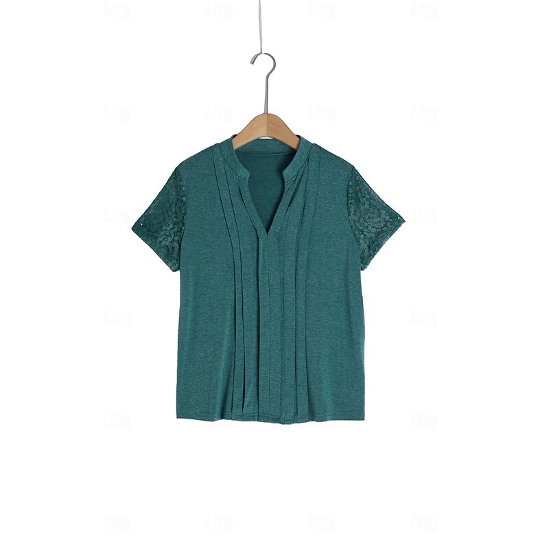 Highlights [Fabric]: Crafted from a soft cotton blend, this womenβs tunic offers breathability and comfort for all-day wear throughout the spring, summer, and fall seasons. The lightweight material ensures a cool and refreshing feel, making it ideal for warm weather. [Fit]: The top features a regular fit that complements various body types, with a tailored silhouette for an elegant look. It provides a slightly relaxed fit that enhances comfort and ease of movement. [Design Highlights]: This tunic boasts a up-to-date V-neckline and short sleeves with intricate lace detailing, adding a feminine touch. Vertical pleats create a sophisticated look, while the solid army green color offers versatility in styling. [Occasions]: Perfect for daily outings, vacations, and casual gatherings, this tunic easily transitions from relaxed, everyday wear to more polished settings with ease. Pair it with denim for a laid-back vibe or with tailored trousers for a refined ensemble. [Size Range]: Available in a range of sizes from S to XL, ensuring a suitable fit for different preferences and body types. Perfect for everyday use. first-class materials and excellent craftsmanship ensure long-lasting durability.