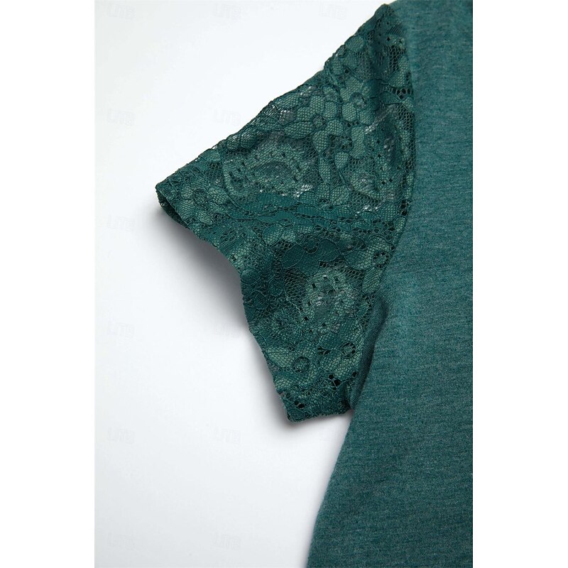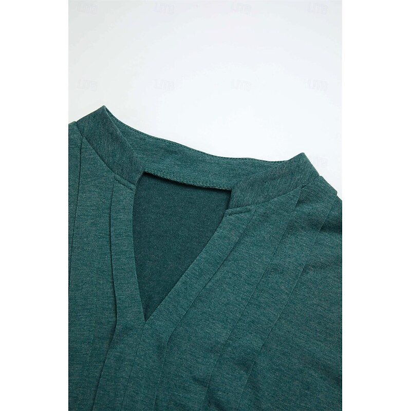 Women's Tunic Dressy Tops Solid Color Plain Daily trendy Short Sleeve V Neck Regular Tops Vacation Daily Lace Pleated Army Green Summer Spring Fall