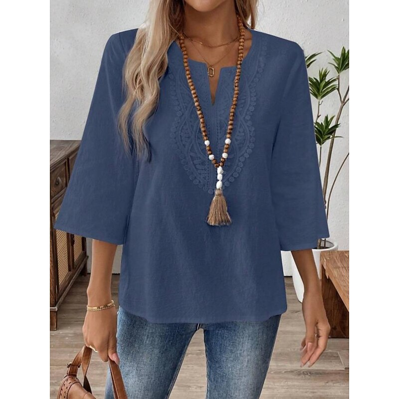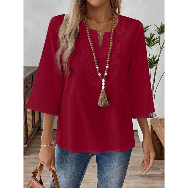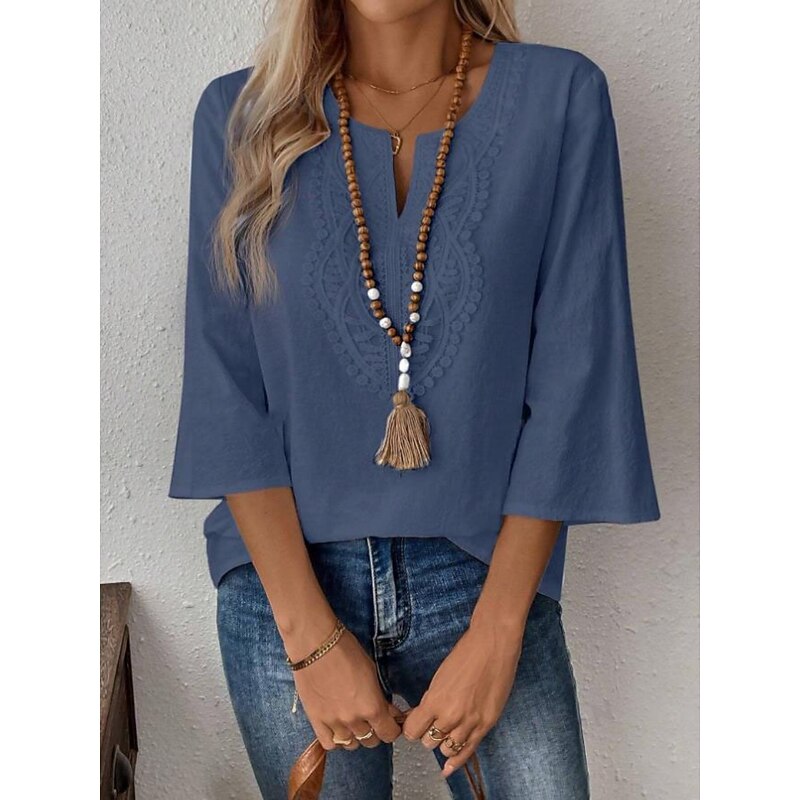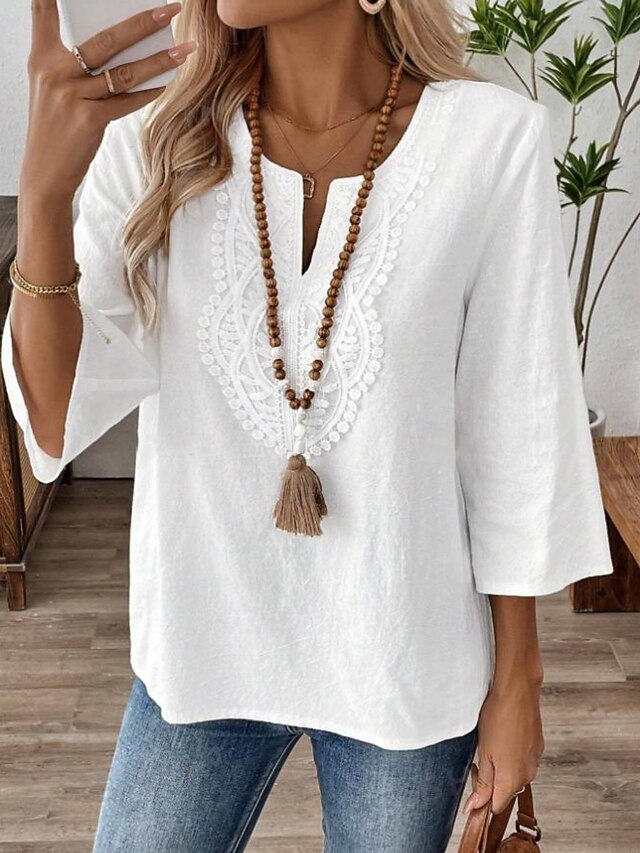 This Women's Lace Shirt Solid Color fashionable Casual 3/4 Length Sleeve V Neck Regular Tops Daily Lace Patchwork White Red Blue Gold Summer Spring combines elegant design with practical functionality. Every detail has been carefully considered to ensure you get the best possible experience. The first-class construction means this product will serve you well for years to come.