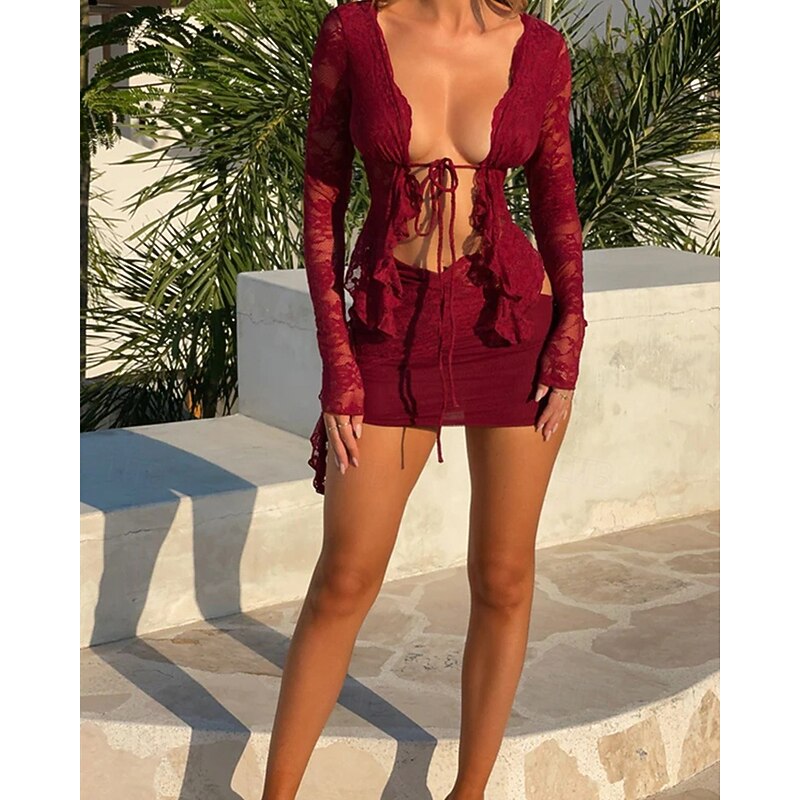 This Women's Blouse Lace Tops Plain Daily contemporary Basic Long Sleeve V Neck Regular Tops Work Daily Holiday Tie Front Lace Trim Black White Wine Spring Fall combines elegant design with practical functionality. Every detail has been carefully considered to ensure you get the best possible experience. The premium construction means this product will serve you well for years to come.