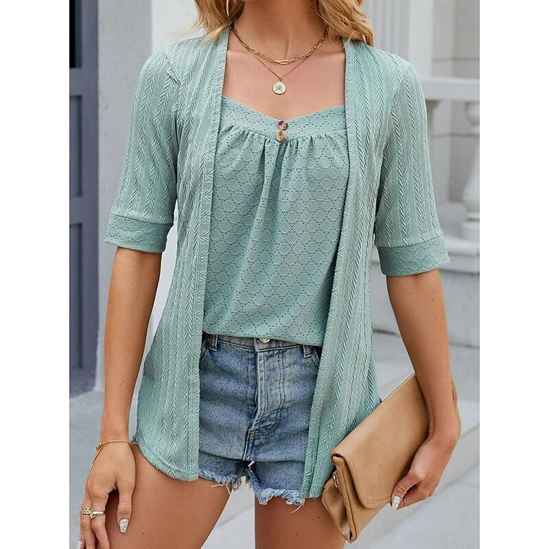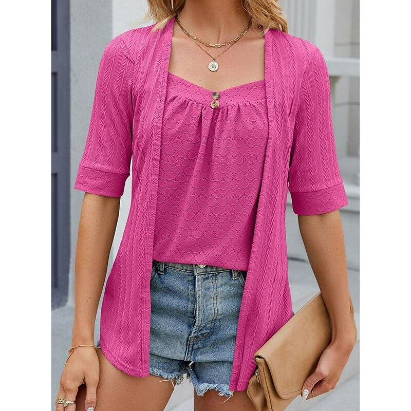 Highlights [Fabric]: Crafted from elegant lace, this women’s top exudes style and comfort, offering a delicate and breathable feel that's perfect for summer. [Fit]: The top provides a dressy, relaxed fit that effortlessly flatters any silhouette, making it an ideal choice for both casual and slightly formal occasions. [Design Highlights]: Featuring a refined crew neck and short sleeves, this lace top is designed with intricate patterns that add sophistication. The use of decorative eyelet details enhances the overall charm of the piece. [Occasions]: Suitable for going out, this top is versatile enough for various casual and dressy events, be it a casual day out with friends or a contemporary evening gathering. [Size Range]: Available in sizes S, M, L, XL, and 2XL, catering to a wide range of body types and ensuring a comfortable fit for everyone. Perfect for everyday use. supreme materials and excellent craftsmanship ensure long-lasting durability.