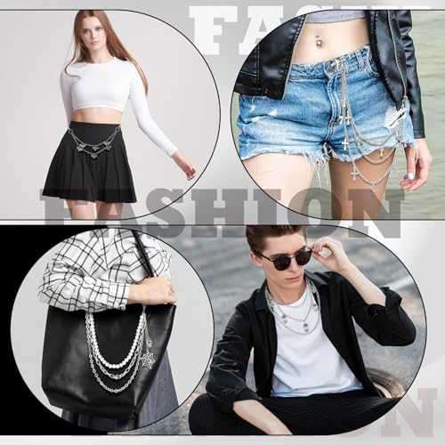• Sturdy and contemporary Pants Chains: designed for daily wear, this package has 6 hip hop pants chains, 2 of which are paired with pearls; The smooth metal links won't snag clothing while adding punk edge to jeans or leather pants; Use them to secure wallets, or as edgy bag charms for concerts and nigh touts